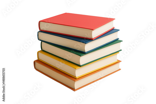 Stack of colorful hardcover books isolated on transparent background. Perfect for educational, academic, library-themed designs. school projects, publishing, back-to-school, e-learning concepts.