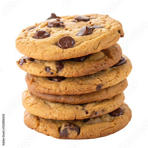 Stack of delicious chocolate chip cookies isolated on a transparent background