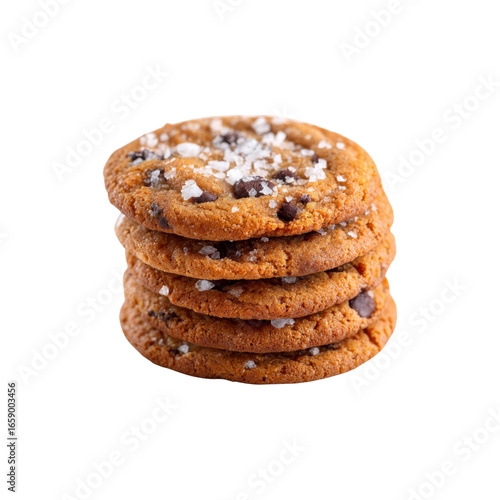 Stack of Four Delicious Chocolate Chip Cookies with Sea Salt