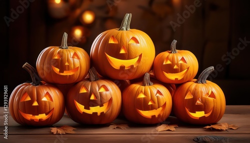Stack of Halloween Pumpkins Against a Backdrop of Autumns Glow VintageInspired Harvest Scene Exuding Warmth and Festive Spirit