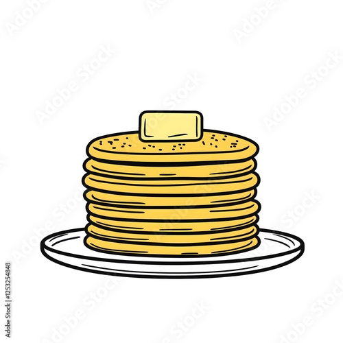 Stack of Pancakes Breakfast Food Illustration Sweet Kitchen Wall Decal Design with Butter Contemporary Hand Drawn Style