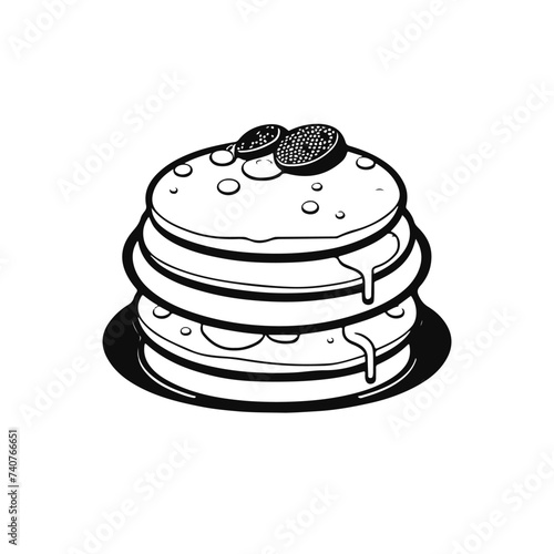 cake, food, dessert, sweet, battercake, plate, illustration, breakfast, stack, birthday, chocolate, cream, meal, vector, white, delicious, isolated, butter, snack, fruit, cartoon, brown, bakery, pile