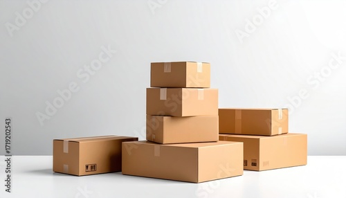 box, cardboard, stacked, cardboard box, shipment, delivery, relocation, moving, storage, package, brown, size, sealed, tape, surface, arrangement, transport, logistic, container, empty, material, object, rectangle, order, supply, commercial, product, simple, plain, background, grey, neutral, light, studio, indoor, isolated, still, life, minimal, composition, stack, distribution, cargo, consignment, good, inventory, wholesale, retail, export