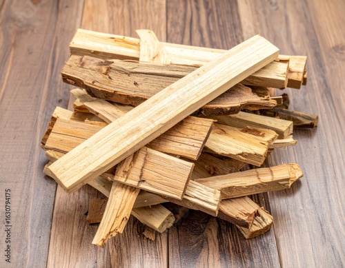Stack of Split Firewood on Wooden Surface in Studio Setting for Energy Resource