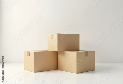 Stack of Three Shipping Boxes in Descending Size on White Floor – Mockup Display
