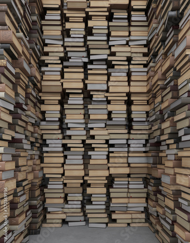 Stack piles of literature text archive books on room background for academic education learning concept. 3d rendering.