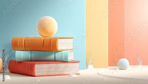 book, stack, reading, learning, education, study, cognition, literature, textbook, page, cover, colours, sphere, ball, shape, geometric, round, pastel, minimal, simple, elegant, modern, creative, artistic, design, still life, composition, arrangement, object, surface, tabletop, indoor, studio, shot, photo, background, light, shadow, contrast, aesthetic, calm, peaceful, serene, tranquil, soft, dreamy, sweet, gentle
