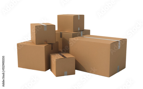 Stacked cardboard boxes delivery package shipment brown goods carton on transparent background