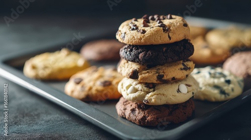Stacked Cookies on Baking Tray with Various Flavors and Textures