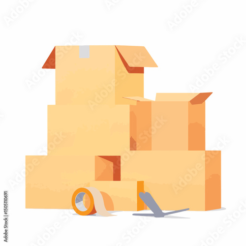 delivery, box, packing, supply, tape, scissors, minimalism, organisation, colours, shape, cardboard, geometric, illustration, composition, arrangement, simplicity, worked, order, neutral, white, clean, orderly, sharp, bright, sharpened, visual, concept, storage, shipping, e-business, logistic, workspace, convey, efficient, aesthetic, modern, business, tool, accessory, still life, no people, elevation, object