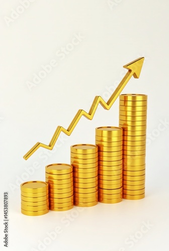 Stacked Golden Coins with Rising Arrow in Abstract Environment