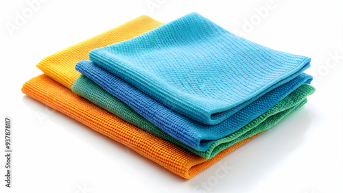 Stacked microfiber cloths in vibrant hues, ideal for gentle cleaning.transparent background