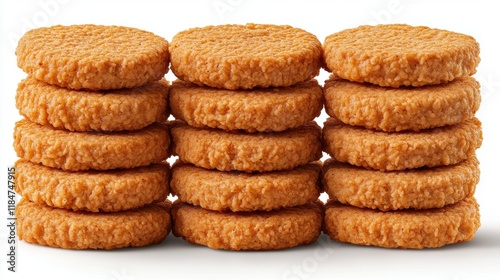 Stacked Round Cookies with Crunchy Texture Against White Background