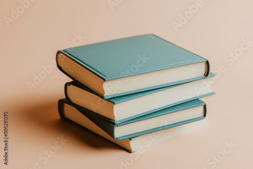 Stacked Turquoise Books on a Soft Beige Background, Perfect for Educational, Literary, or Creative Projects Emphasizing Knowledge, Wisdom, and Reading Culture