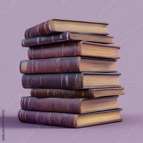 Stacked Vintage Books in Rich Brown Leather Bindings