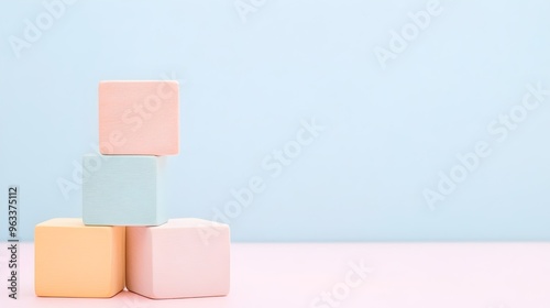 Stacked Wooden Blocks in Pastel Colors - Minimalist Concept for Growth and Structure