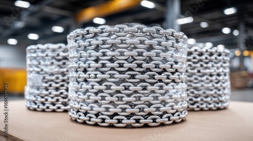 chain, metal, steel, industrial, warehouse, manufacturing, hardware, safety, construction, strength, equipment, silver, linked, heavy, hard-wearing, material, industry, engineering, structure, supply, chain, storage, stack, cardboard box, transport, logistic, bulk, closeup, texture, surface, shiny, bright, detailed, macro, production, factory, workspace, tool, object, bundle, pile, arrangement, organised, commercial, design, abstract, pattern, metallic