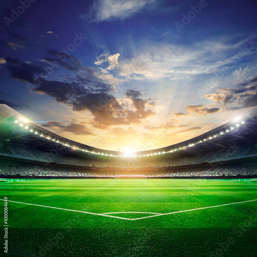 stadium, football stadium, horizontal, soccer, sport, grass, background, colours, competition, football, game, team, empty, field, green, outdoors, arena, athletic, baseball, championship, lawn, match, ball, copy space, photo, light, achievement, action, advertisement, advertising, american, audience, champion, colourful, competitive, event, foot, front, goal, illuminated, kick, land, league