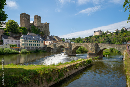 Stadt Runkel an der Lahn in Hessen Fluß Burg Blauer Himmel Mittelalter