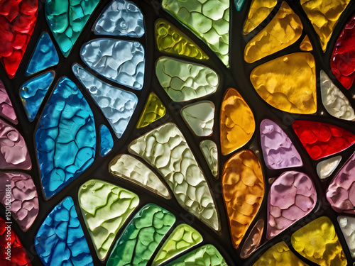 Stained Glass Symphony: A close-up of a stained glass window. A vibrant dance of light and color, evoking a sense of artistry, spirituality, and architectural detail.
