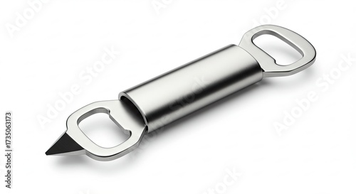 bottle, opener, can, tab, lifter, tool, kitchen, bar, drink, beverage, metal, steel, stainless, silver, shiny, clean, modern, simple, minimalist, accessory, contraption, utensil, equipment, aid, convenience, utility, handy, practical, ergonomic, design, object, item, product, manufactured, hardware, component, part, device, instrument, apparatus, mechanism, tooling, gear, supply, accessory, kitchen utensile, alcohol