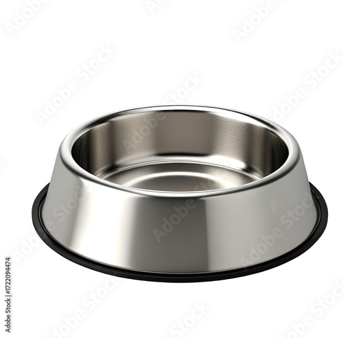 Stainless steel pet bowl, isolated, food, kitchen, clean, studio, background, website