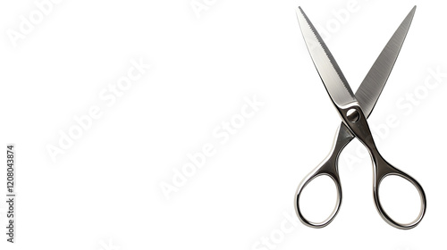 Stainless steel scissors with shiny blades. isolated on transparent background.