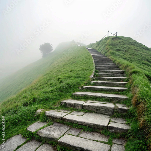 landscape, path, road, sky, nature, grass, mountain, green, hill, stair, field, step, tree, stone, summer, staircase, way, rural, countryside, wood, cloud, forest, outdoors, staircase, travel