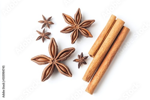 Star anise and cinnamon sticks isolated on white background