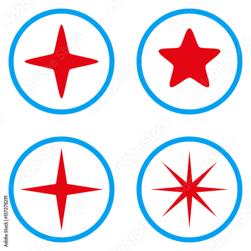 Star rounded icons. Vector illustration style is a flat iconic symbols inside blue circles. Designed for web and software interfaces.