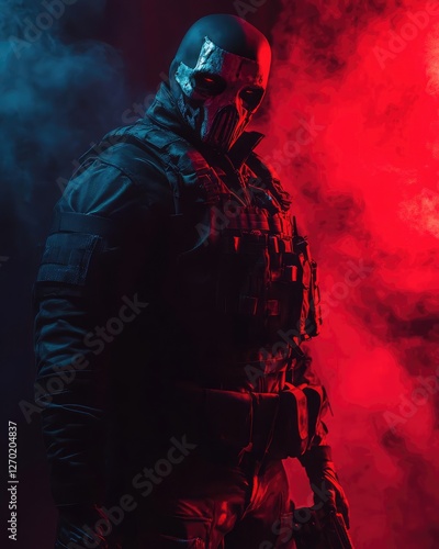 Star Wars Villain Portrait in Dramatic Lighting with Fog Effects and Red Accent Illumination Perfect for Pop Culture and Entertainment Photography