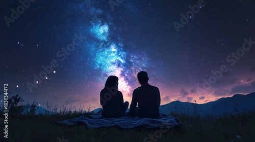 couple, blanket, silhouette, milky way, star, celestial, night, galaxy, romance, adventure, sky, nature, astronomy, love, calmness, tapestry, universe, dreamy, exploration, wonder, cosmos, imagination, togetherness, nightscape, peaceful, magic, horizon, twinkling, scenic, nocturnal, awe, solitude, aethereal, light, forever, panoramic, beauty, serenity, heartbeat, connection, landscape, dark sky, constellations, wanderlust