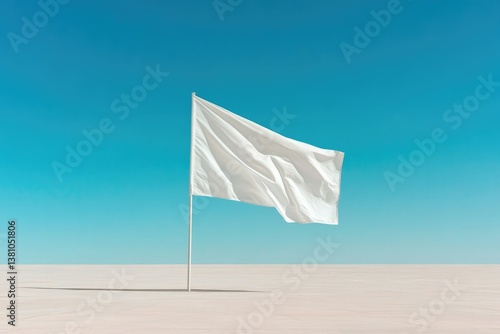 stark, solitary, white, flag, raised, against, plain, expansive, sky, peace, fight, discrimination, ample, clear, copy, space, image, essence, simplicity, call, equality, text, theme, colours, background, detail, inspiration, abstract, concept, art, high-quality, composition, texture