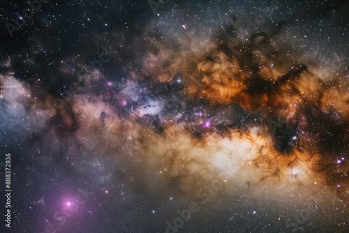 Starry, nebulous cosmic clouds, ethereal scene of the Milky Way galaxy with various constellations and nebulas