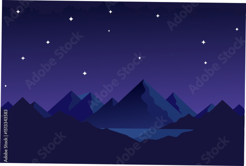 night, sky, landscape, mountain, moon, nature, star, star, vector, blue, mountain, dark, illustration, silhouette, light, space, cloud, winter, sun, planet, snow, sunset, tree, abstract, water