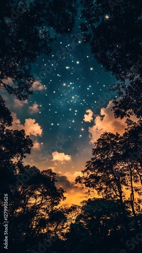 night, sky, star, tree, cloud, sunset, nature, beautiful, amazing, forest, scenic, view, dark, twilight, gold, photo, astronomy, landscape, silhouette, evening, cloudscape, astrophotography, sunrise, outdoors, wood, night time, dreamy, peaceful, tranquil, mystical, heavenly, magical, starry
