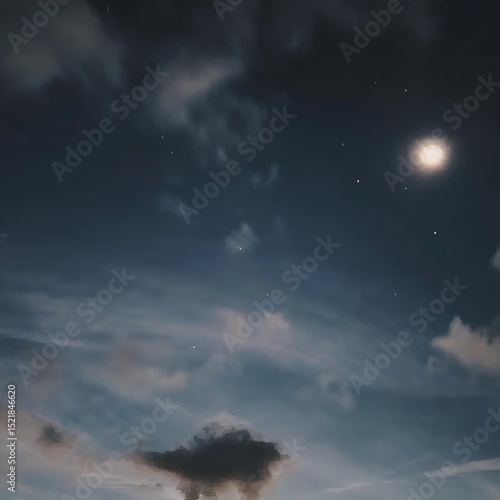 Starry Night Sky with Glowing Clouds Illuminated by the Moon