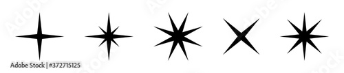 Stars. Black stars vector icons, isolated. Star different shape in flat design. Vector illustration