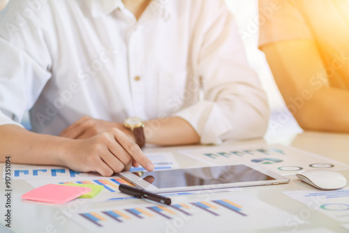 Startup entrepreneurs are talking to business consultants to study and calculate feasibility of investing business to get worthwhile return. ​​studying with investment consultant before doing business