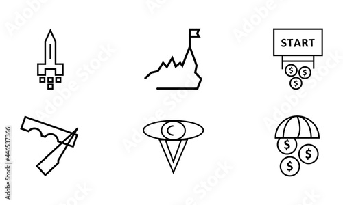 Startup icons set, outline style vector