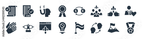 startup stategy and filled icons. glyph vector icons such as gold medal, attitude, restrict, clap, fight, attractive, exchanging, valid sign isolated on white background.