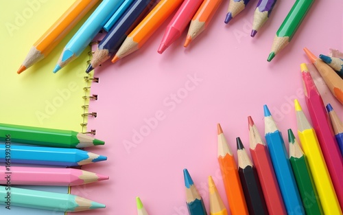 Stationery colorful writing tools accessories pens pencils, color paper. Back to school. Office supplies products. High quality