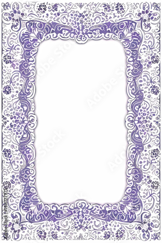 stationery, letter, invitation, or scrapbook paper or card design with elegant border - intricate fancy lace lavender frame with white background