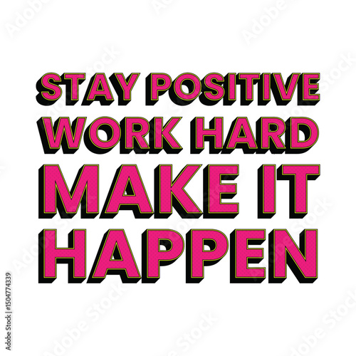 Stay Positive Work Hard Make It Happen Vibrant Neon Pink and Transparent Pop Art Style Positive Mindset Saying Phrase