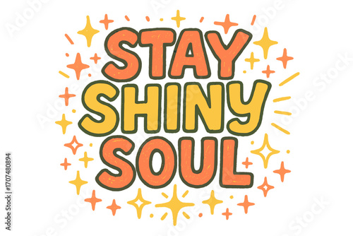 Stay Shiny Soul. “Stay Shiny Soul”. Doodle-style lettering with thick sketchy strokes, textured fills, and