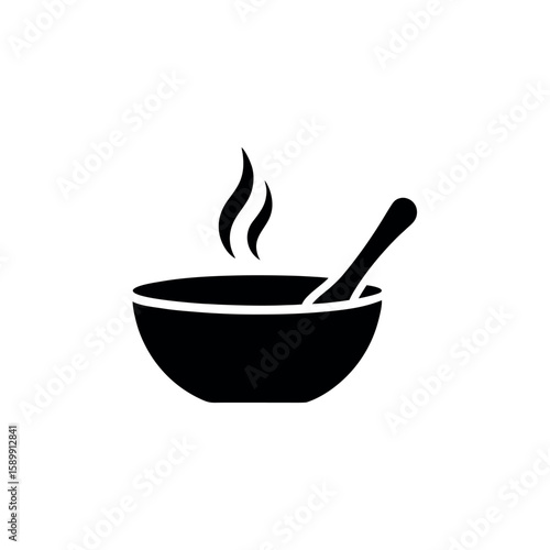 Steaming Bowl with Spoon Logo Icon Vector Illustration
