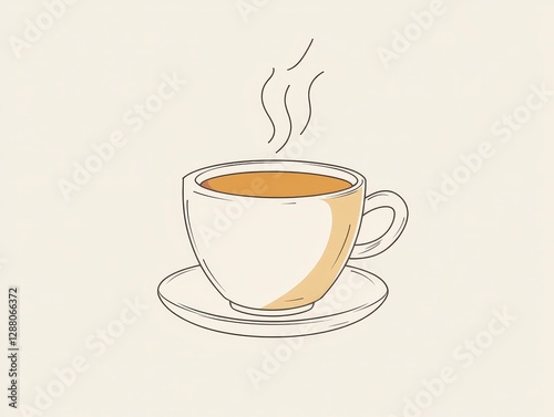 hot drink, tea, cup, saucer, drink, beverage, hot, steaming, line, art, minimalist, simple, drawing, illustration, beige, brown, off-white, background, cafes, morning, comfort, warm, cosy, relaxing, design, vector, graphic, artwork, image, picture, visual, aesthetic, clean, modern, minimal, style, icon, symbol, element, graphic