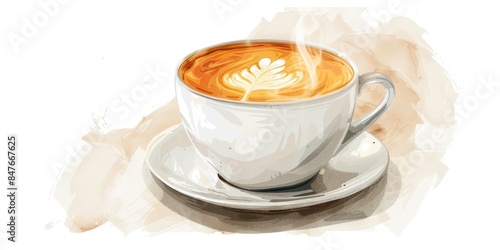 hot drink, watercolor, illustration, latte, aromatic, cosy, foam, breakfast, hand-made, caffeine, stylish, delicate, barista, hot, soothing, steaming, artistic, painting, cup, beverage, art, drink, elegant, design, creative, abstract, warm, morning, cafes, delicious