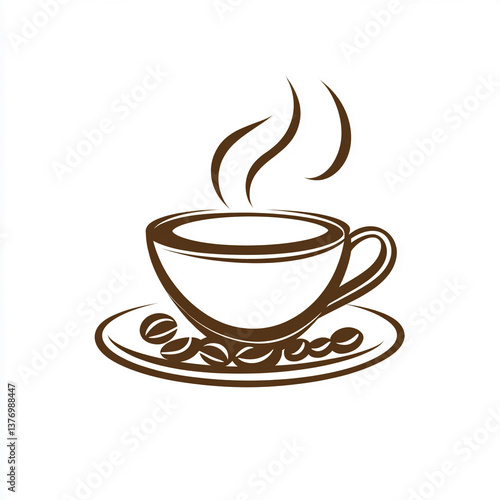 Steaming cup of coffee with coffee beans on a plate in a cozy cafe setting, inviting warmth and comfort during a morning ritual