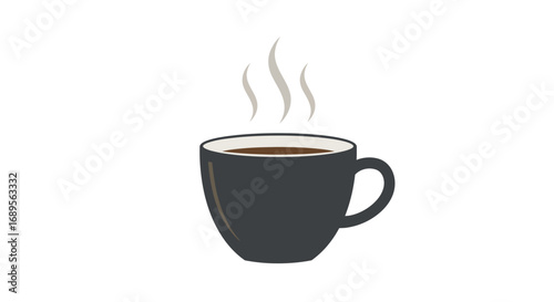 hot drink, mug, cup, drink, beverage, hot, steam, dark, grey, grey, modern, simple, design, handle, caffeine, aroma, morning, energy, refreshment, warm, liquid, porcelain, ceramic, container, break, office, kitchen, table, breakfast, vector, illustration, graphic, icon, symbol, signs, cafes, shop, eatery, menu, isolated, white, background, brown, inside, surface, curve, shape, line, art